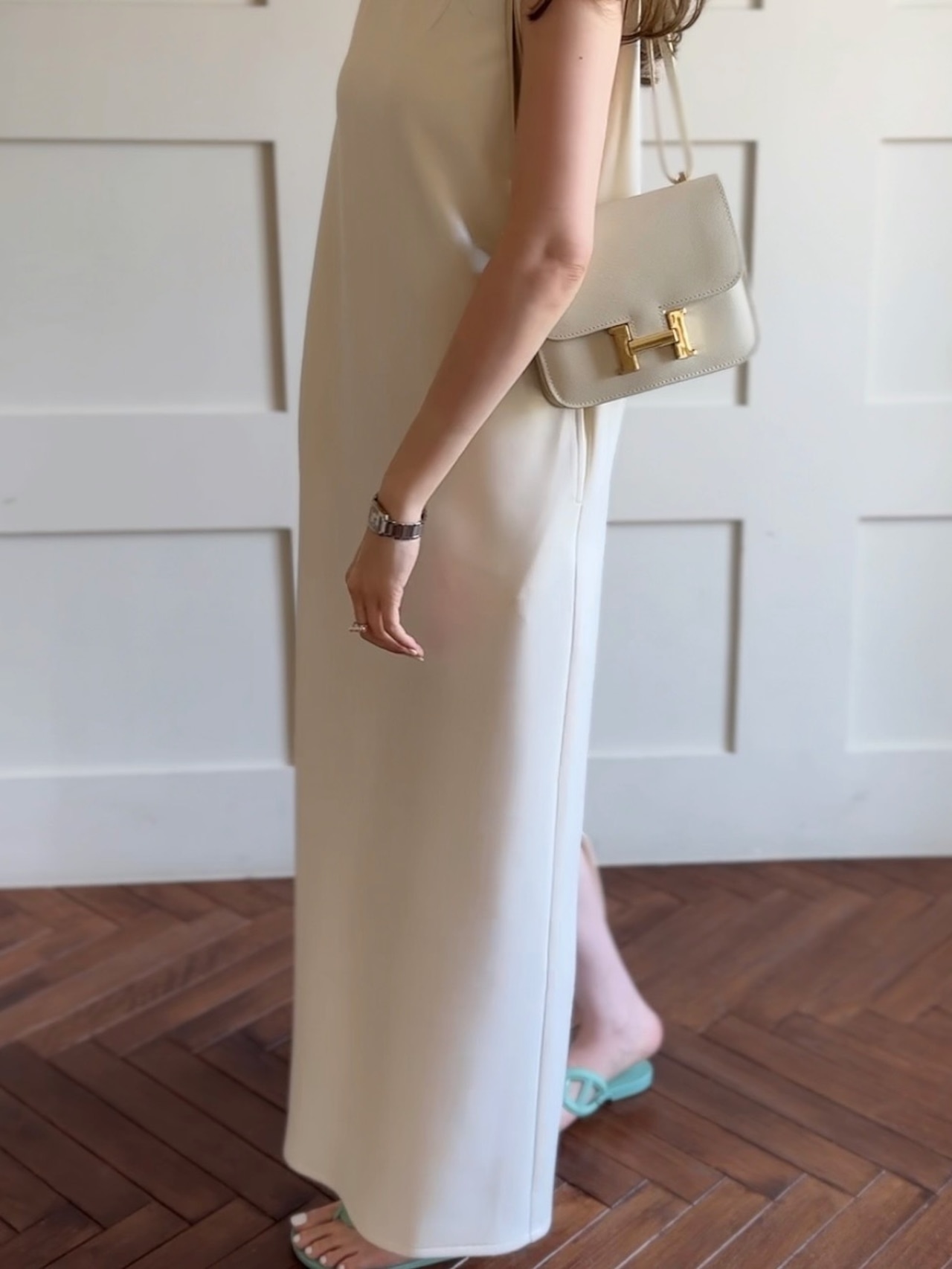 シンプルながらも立体感のあるシルエットで一枚でサマになる上品なデザインです。
