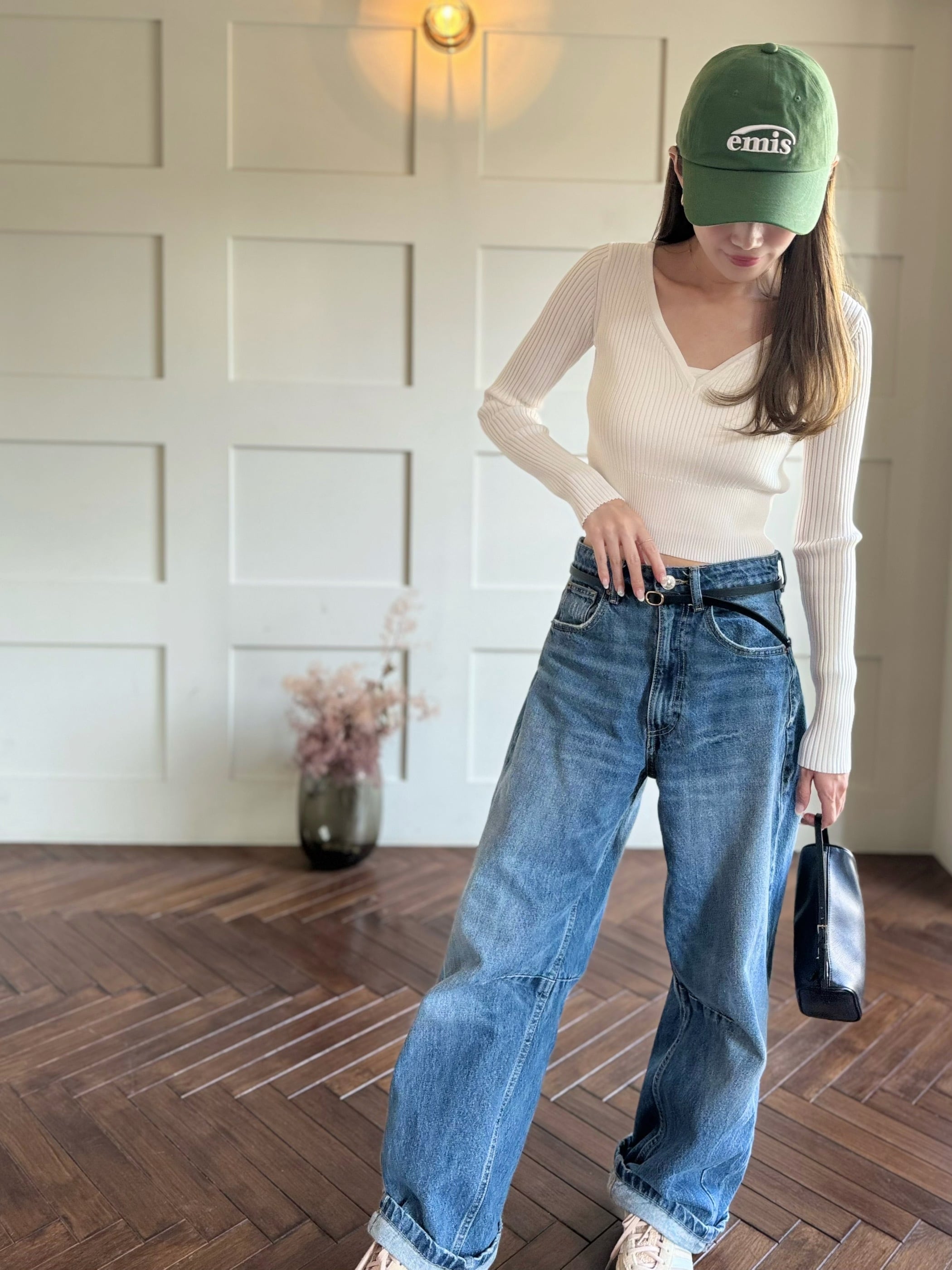 シンプルながらどんなボトムと合わせてもアクセントになる一着です。