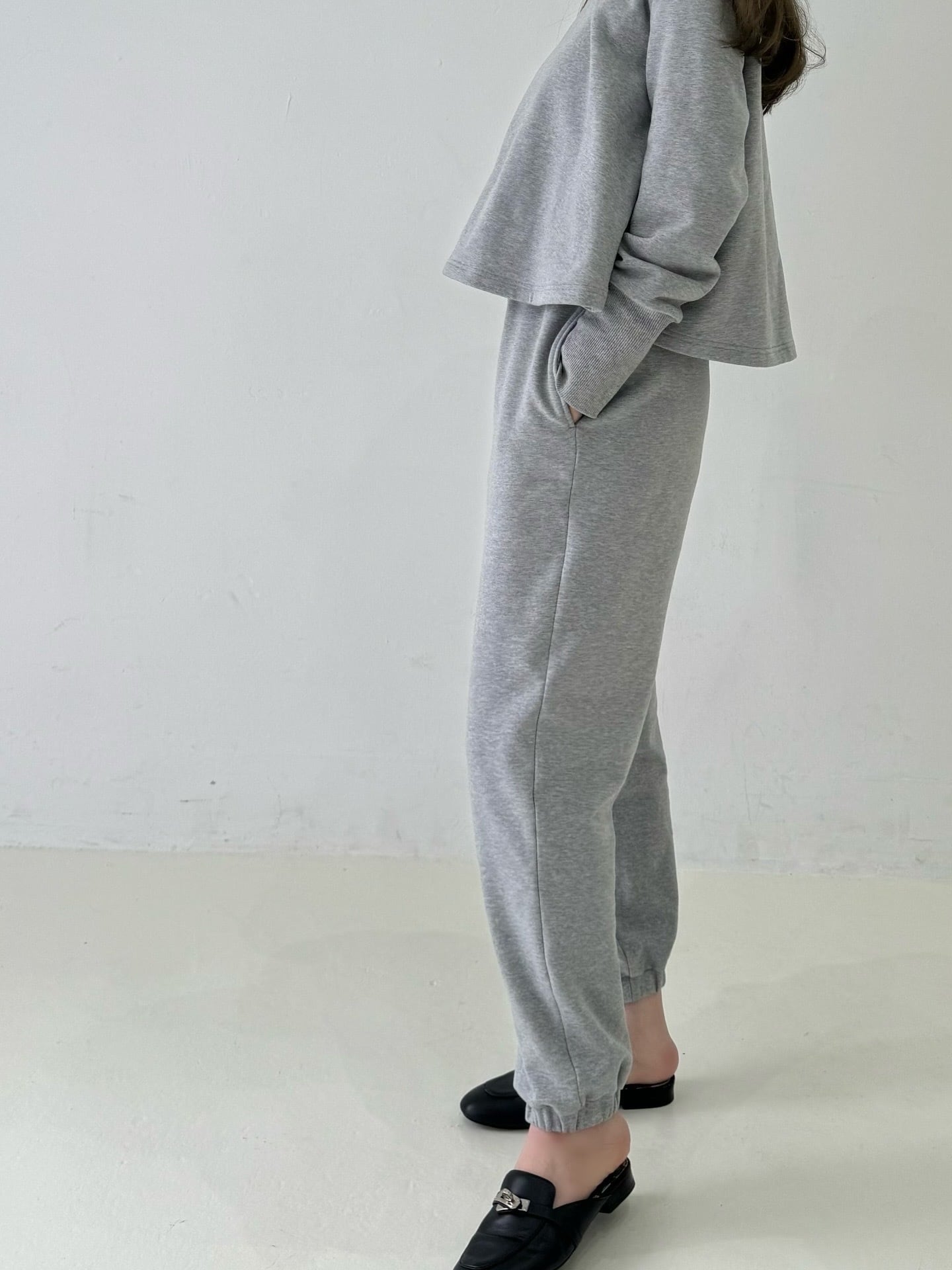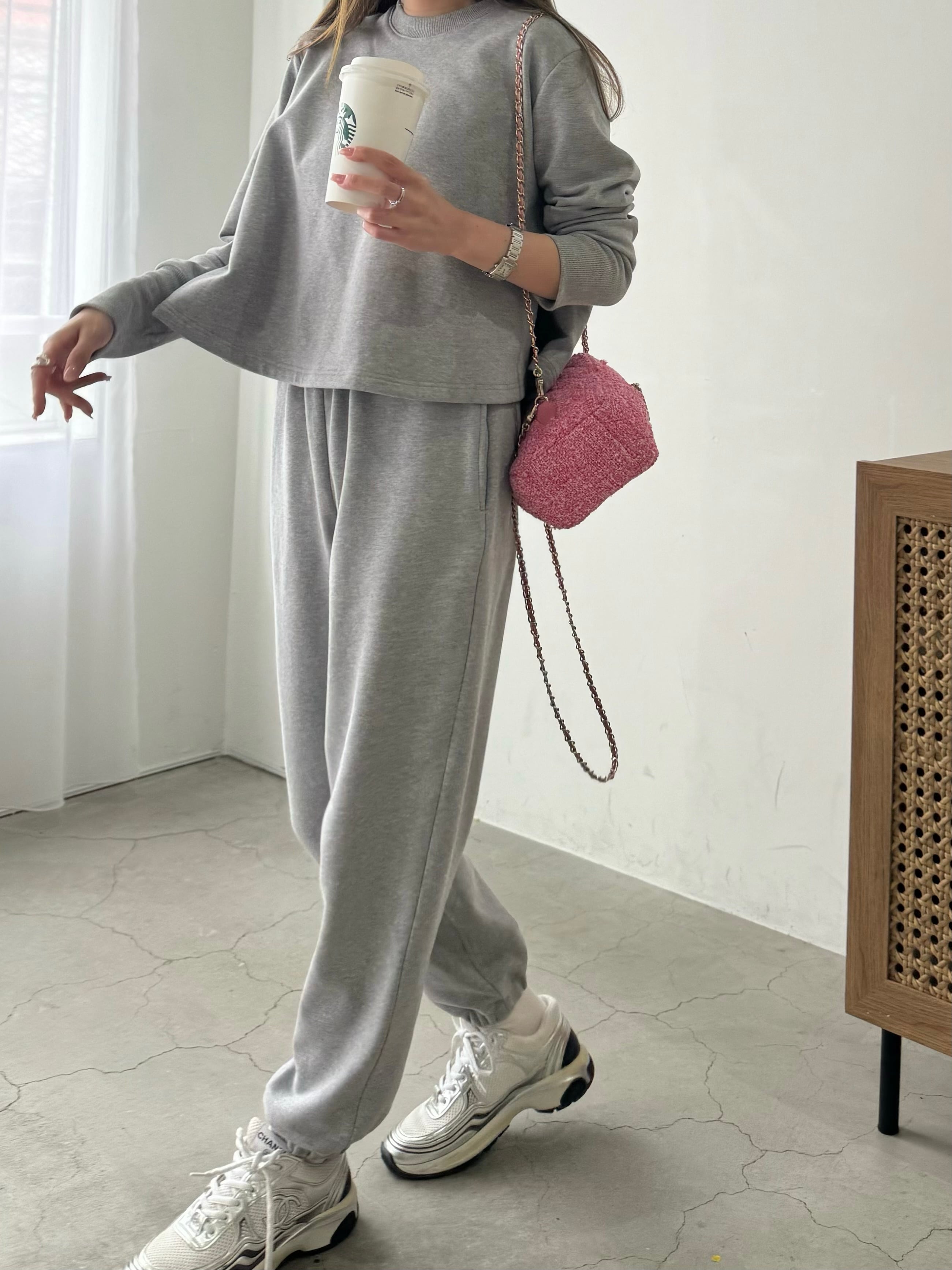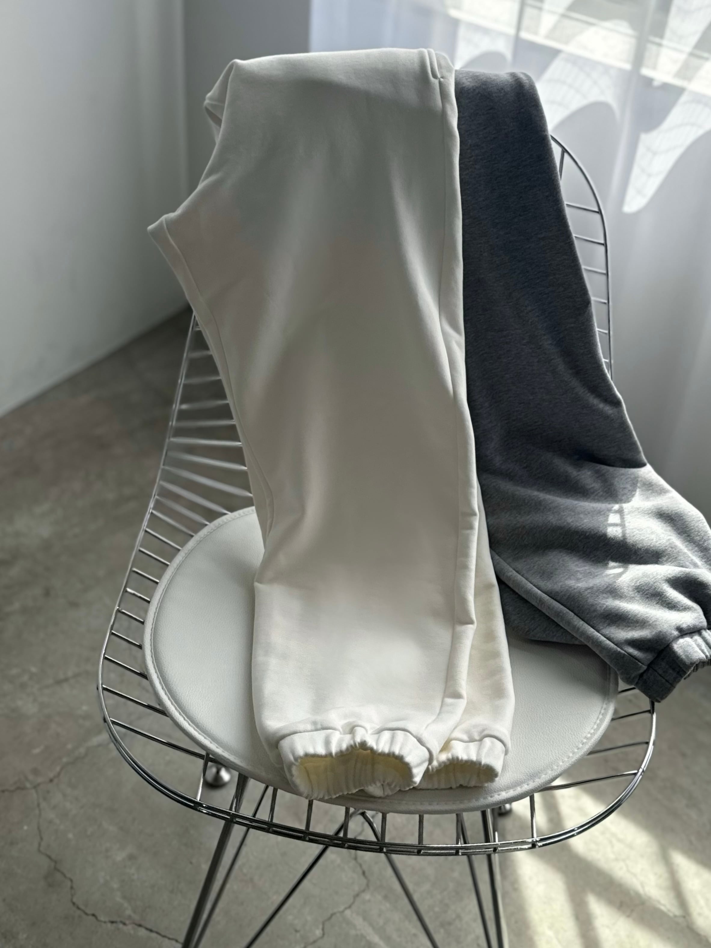ふんわりとした質感とやわらかな肌触り、美しいシルエットが魅力の美脚スウェットパンツ。